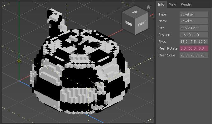 Qubicle's built-in Voxelizer allows you to easily convert OBJ meshes into voxel objects.